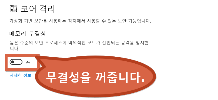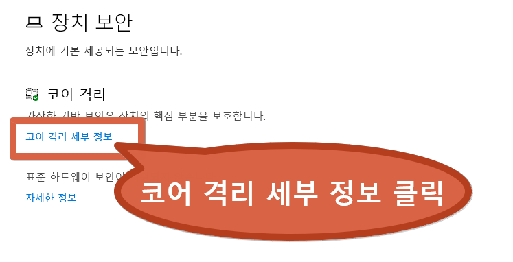 그 중에서 '코어 격리 세부 정보'를 클릭합니다.