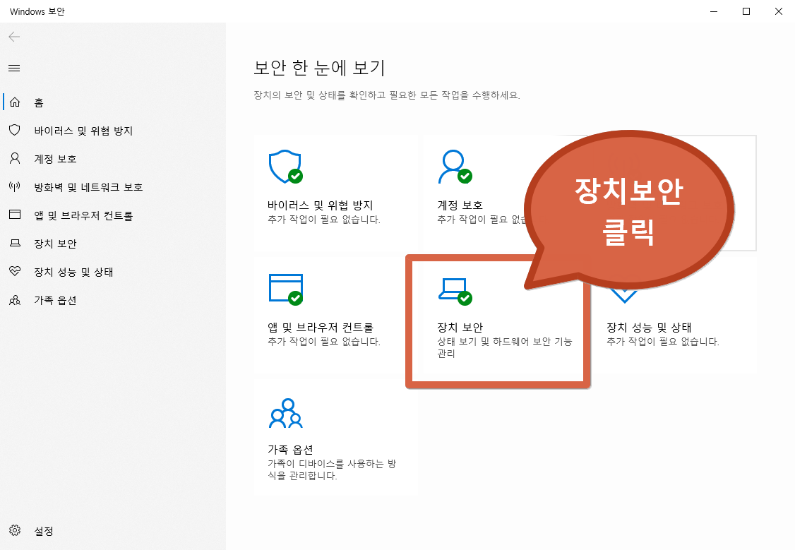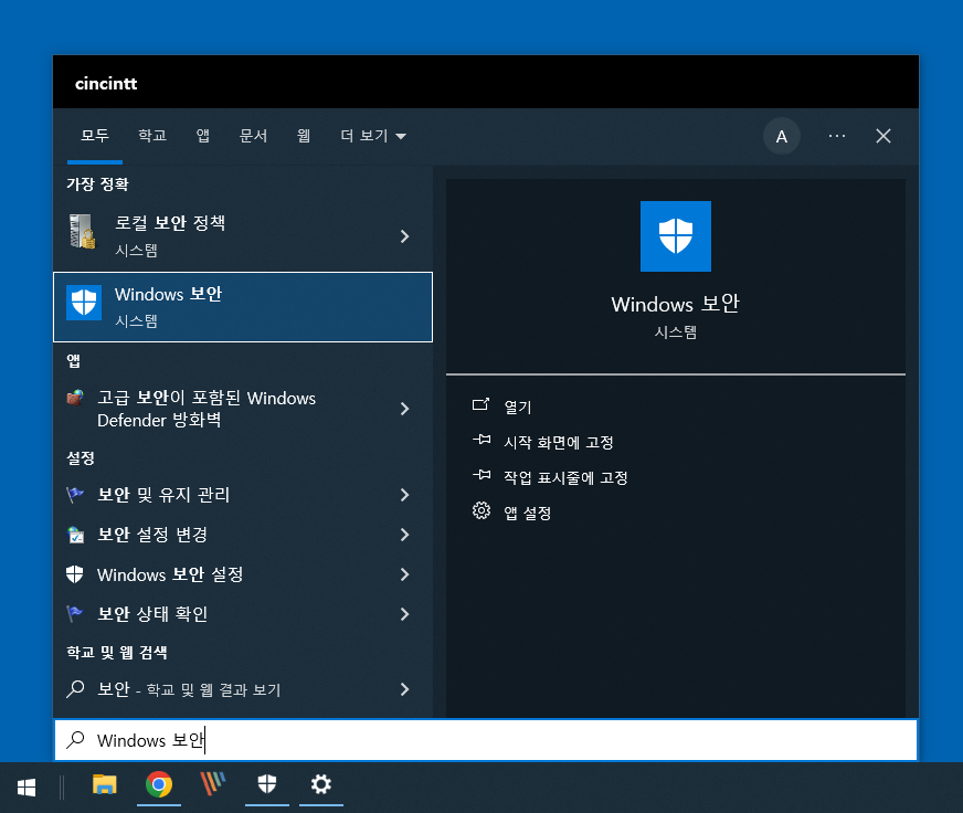 시작버튼을 누르고 '보안'이라고 입력합니다.