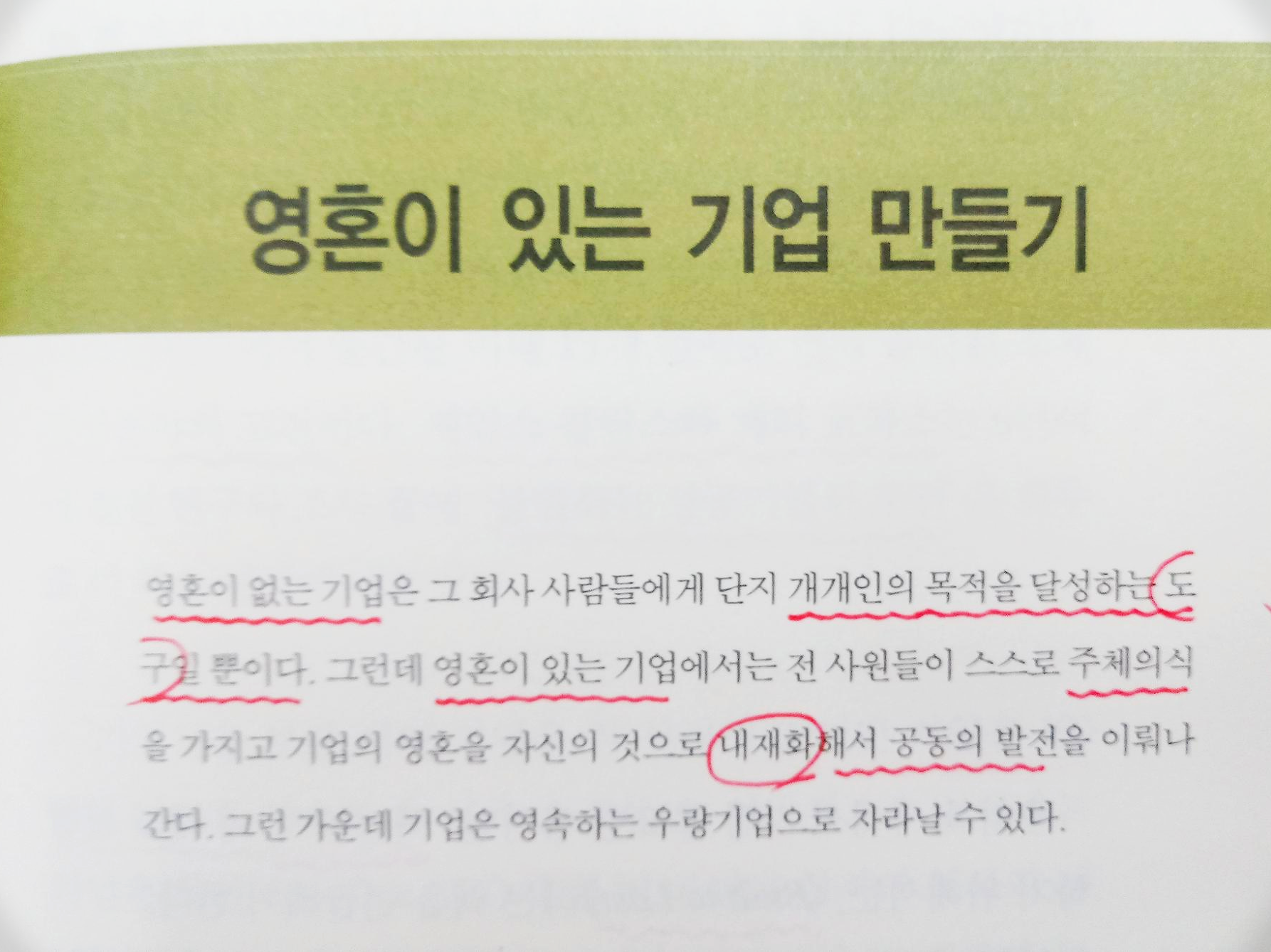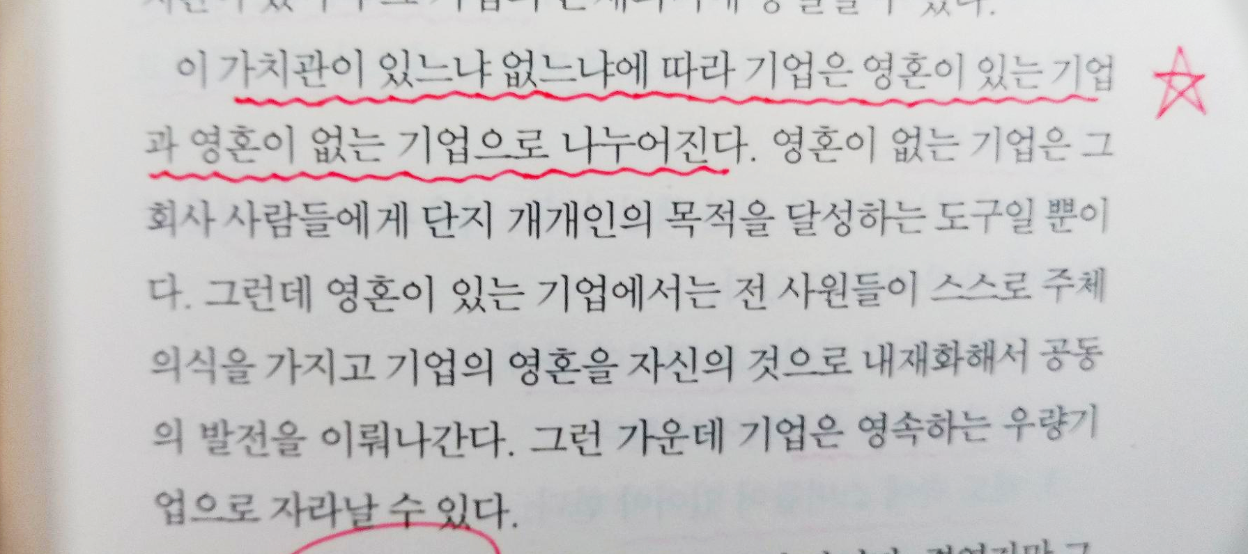 핵심가치를 가지고 이를 지키기 위해 노력하는 기업을 영혼이 있다고 설명하였다.