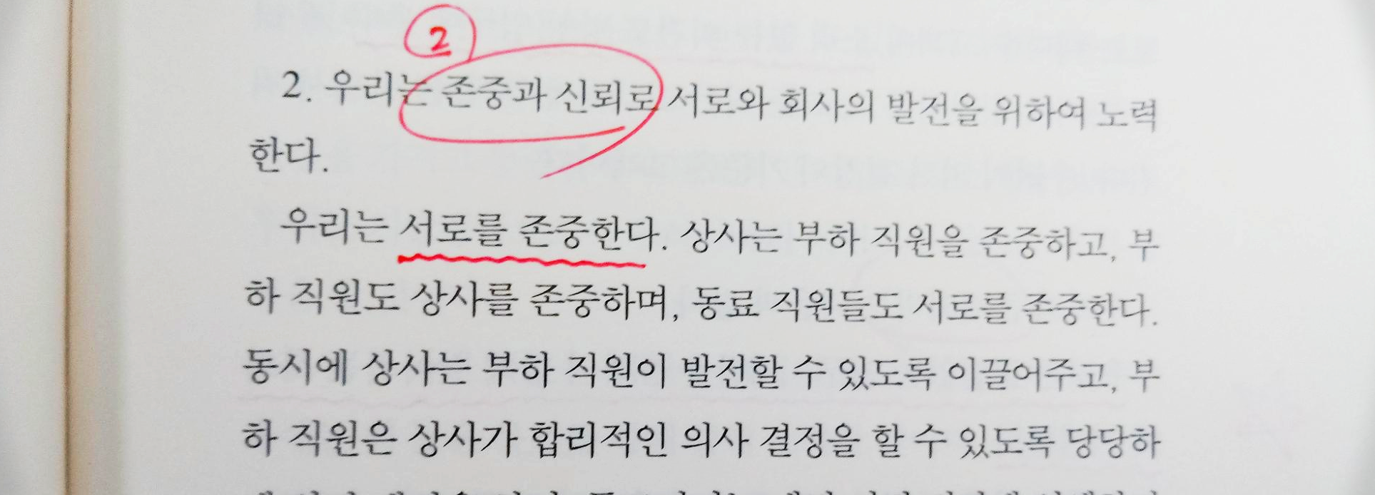 구체적으로는 회사의 발전을 위해서 이의 제기와 토론이 활발하게 이루어져 한다는 내용이다.