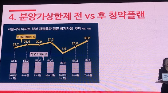 7월 상한제 발표 이후 올라가. 50점대가 애매함. 중요한 것은 최저가점. 이것만 넘어서면 당첨.이게 계속 올라가고 있다.