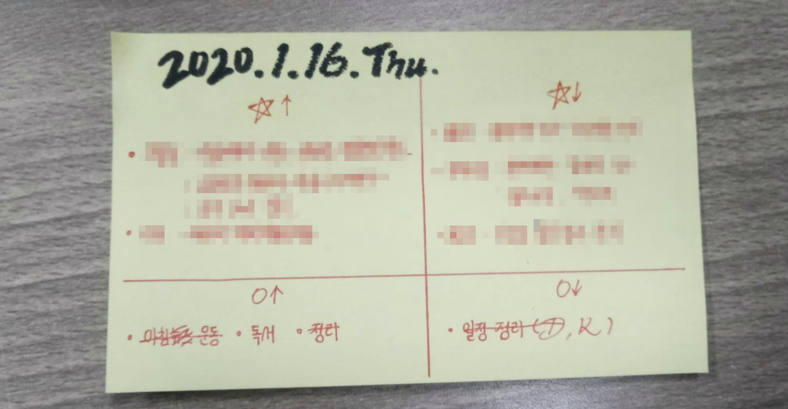 이렇게 정리를 하고나니 멍 때리거나 딴 짓하는 시간이 엄청 줄어들었습니다. 지금 뭘 해야할까 고민하는 시간이 줄어들고 업무 우선순위에 따라 업무를 처리하니 효율도 덩달아 오르더군요. 이런 기록이 별 것 아닌 듯하지만 한번 적어놓으면 그 효과는 엄청나다는 것을 실감할 수 있었습니다.