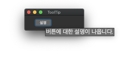 QToolTip 기능으로 사용해서 버튼에 설명글을 달 수 있다.