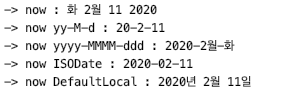 print(f'-> now yy-M-d : {now.toString("yy-M-d")}')