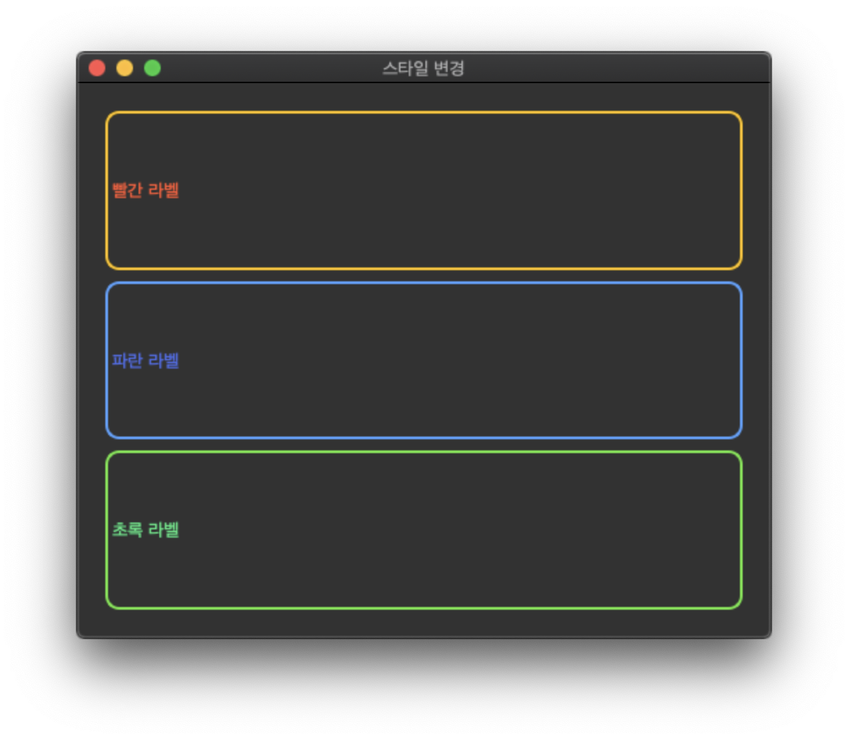 이전보다 코드가 길어졌는데, 3개의 라벨마다 속성을 입력해서 그렇지 원리는 간단합니다.