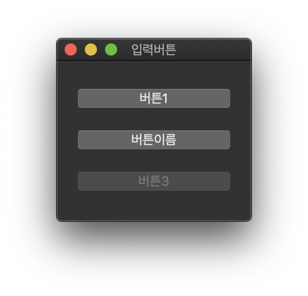 버튼 3개를 만들고 각각 활성화, 버튼 이름 설정, 비활성화 기능입니다. 생긴거에 비해 원리는 무척 단순한데 버튼을 만들고 각 버튼에 옵션을 설정하는 원리입니다. 버튼이 작동하는 조건을 '시그널'이라고 하고, 작동 내용을 '메소드'라고 하고 "버튼.시그널.메소드" 식으로 작성합니다, 요컨데, btn.clicked.function() 라고 하면 클릭되는 시그널을 받아 사용자가 지정한 function 기능을 실행합니다. 아래 링크에서 자주 사용하는 매소드를 확인할 수 있습니다.