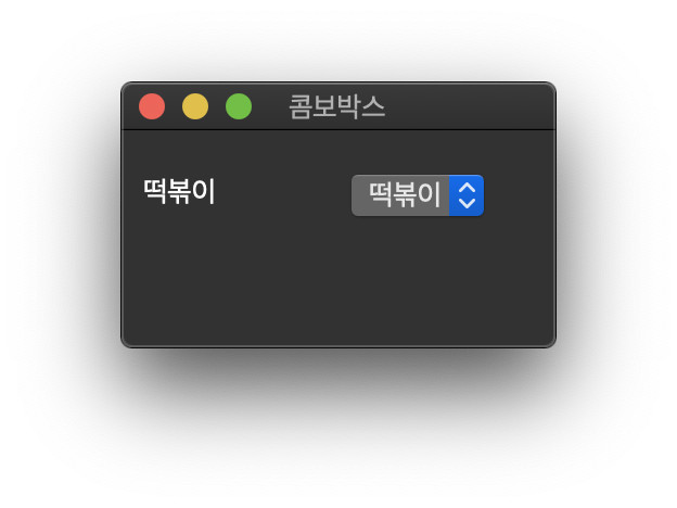 먹고싶은 분식을 골라보는 기능입니다. 콤보박스 객체를 만들어 주고 addItem으로 원하는 옵션을 추가해주면 됩니다.