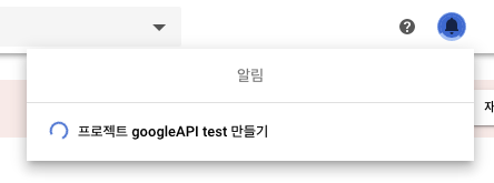 좌측 상단에 프로젝트 선택을 클릭해주세요. 그리고 나오는 팝업창에서 우측 상단의 '새 프로젝트'를 클릭합니다. 그리고 원하는 프로젝트 명을 입력해줍니다. 저는 'googleAPI test'으로 설정했습니다. 참고로 특수문자는 사용 불가입니다.