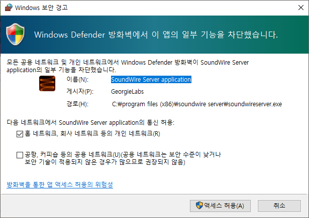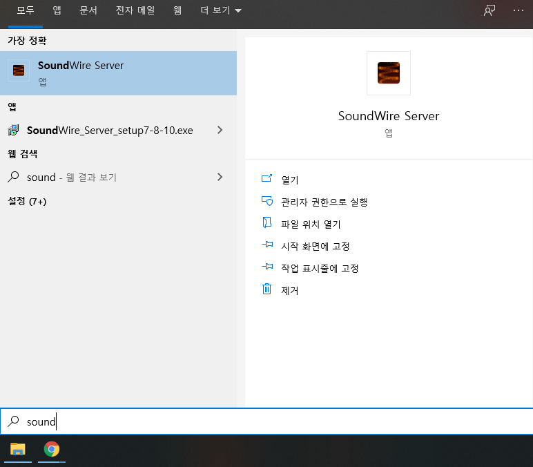 해당 프로그램은 시작에서 soundwire를 입력하면 실행할 수 있습니다.