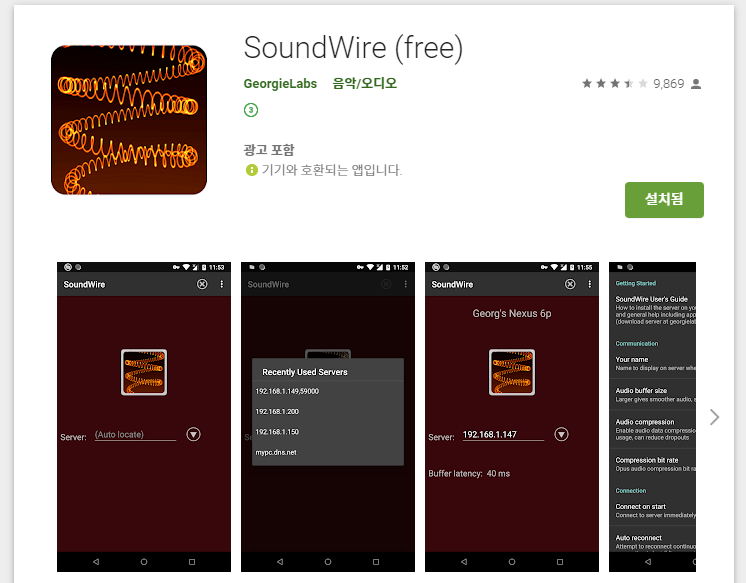 구글 플레이 스토어에서 SoundWire (free)를 검색하여 설치합니다. 아래 QR 코드를 찍으면 바로 이동합니다.