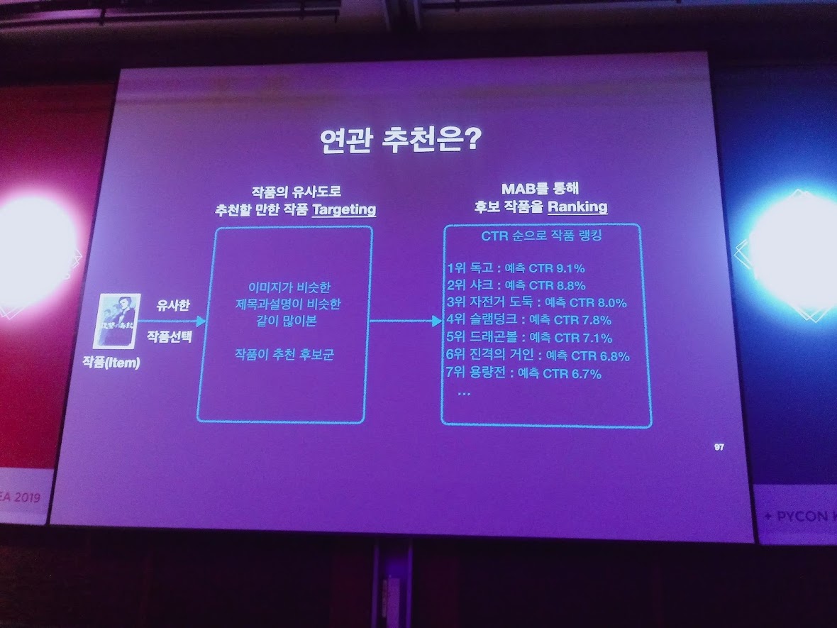 그 중에 가장 좋은 작품을 예측. 추천 되는 작품의 평균 CTR은 5.1%.