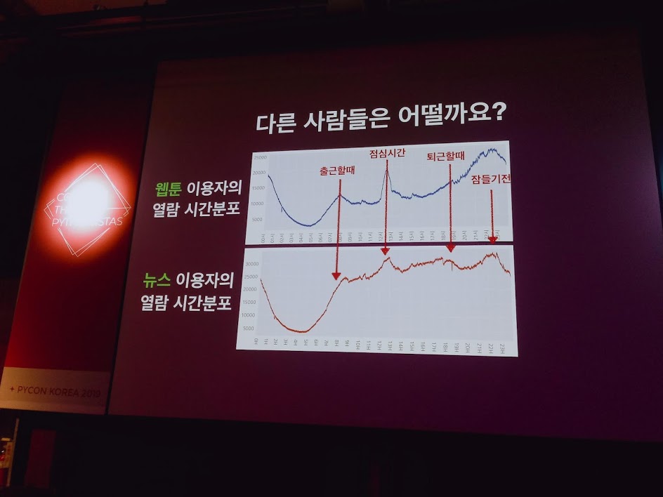 웹툰의 열람 시간 분포를 보면 거의 잠들기 전에 많이 봄.