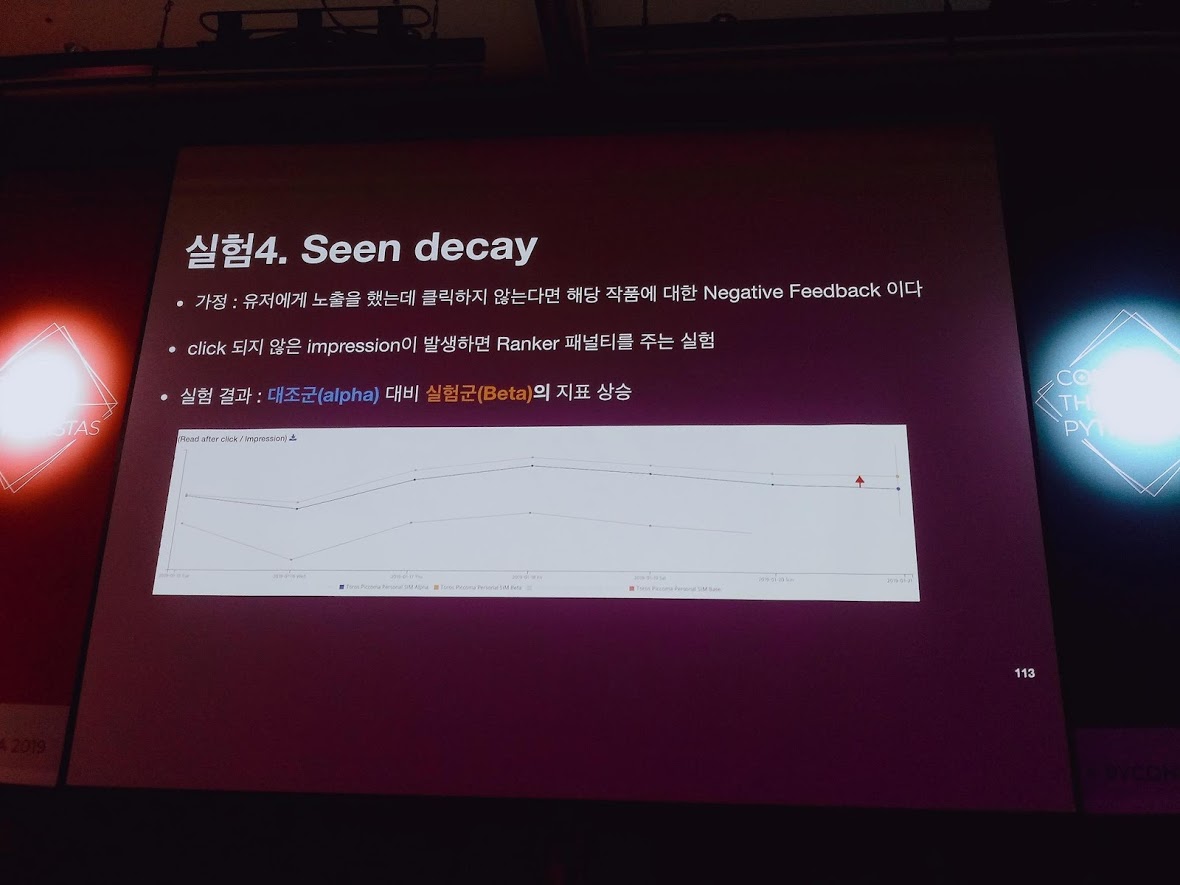 2017년 부터 적용한 추천기술은 대부분의 추천시스템의 목표인 클릭(웹툰 열람)을 최대화를 달성하기위해 "개인화 작품 추천"과 "ViewerEnd 추천이라는 연관 추천"을 구현 및 서비스에 적용하였고 많은 성과를 이루었습니다.