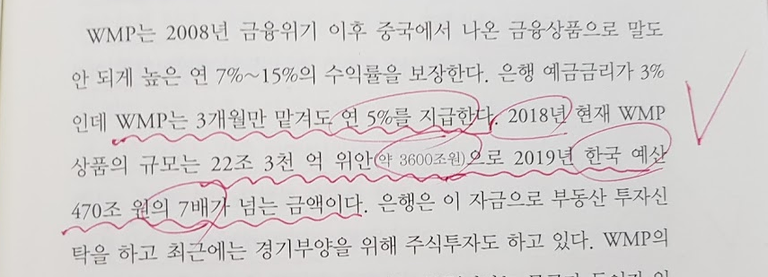 중국의 찬란한 발전 뒤에는 엄청난 병폐가 있습니다. 그중 하나가 바로 자산관리상품(WMP, 윈도우미디어플레이어가 아닙니다.)입니다. 은행 이자가 3%인데 이 상품은 7~15% 수익을 보장해준다고 하니 많은 사람들이 너도 나도 신청했죠. 문제는 그 이자를 어디서 만드느냐입니다. 미국이 중국에 관세를 때리면서 수익금은 점점 줄어드는 판에 말이죠. 저자는 비밀을 책을 통해 설명해주는데 정말 충격적입니다.