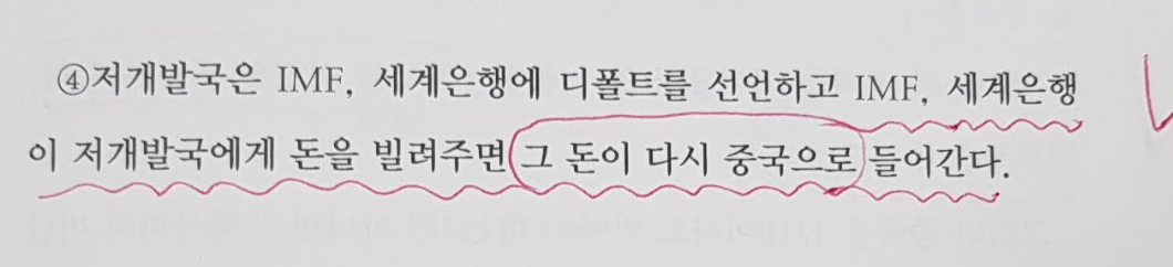 하지만 미국은 만만치 않은 상대입니다. 과거 쟁쟁한 경쟁국을 물리치고 살아남은 절대 파워를 자랑하는 불멸의 챔피언입니다. 그만큼 경험치도 높습니다. 미국은 중국의 이런 속셈을 간파하고 IMF에 손을 써서 저개발국에 돈을 빌려주지 않도록 만들 것입니다. 그리고는 막대한 채무를 중국에 돌리도록 하여 중국을 굶겨 죽이는 전략을 생각해볼 수 있습니다.