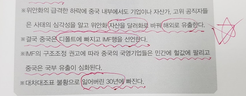미중 무역 전쟁은 현대의 가장 큰 전쟁입니다. 수많은 사람들한테 전쟁의 여파를 끼지고 있습니다. 세계 챔피언인 미국을 이기기 위한 전략은 무엇일까요? 저자는 거대한 일대일로 프로젝트에 따른 IMF라고 예상합니다. 중국에서 돈을 빌린 많은 저개발국이 디폴트에 걸려 IMF로 달러를 받으면, 이 달러를 중국으로 흡수하겠다는 속셈입니다.