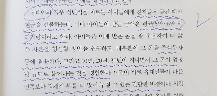 세계에서 가장 부를 가진 민족인 유대인은 보고 배울 것이 많습니다. 그중 하나가 성인식이죠. 유대인은 성인식 때 일가친척들이 돈과 시계를 선물해준다고 합니다. 대략 5,6만 달러 정도라고 하는데 이걸 불려서 나중에 창업 자금으로 쓴다고 합니다. 분명 나는 그 나이에 수천만 원을 받았다면 게임에 썼을 듯...