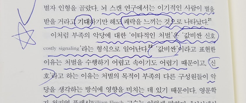 악당에 대한 처벌을 '값비싼 신호'라고 합니다. 절대적인 질서 혹은 권선징악이라고 할 수 있겠습니다. 소수의 권력 독점, 부패, 횡령 등에 우리가 분노하는 것은 이런 '값비싼 신호'이지요. 현실이든 이야기이든 뇌는 그 둘을 구분하지 않습니다. 그래서 이런 신호는 타인한테 피해를 끼칠 수도 있고, 반대로 나쁜 사람을 색출하는 용기 있는 고발자가 되기도 합니다. 이성의 중요성을 느낄 수 있는 대목입니다.
