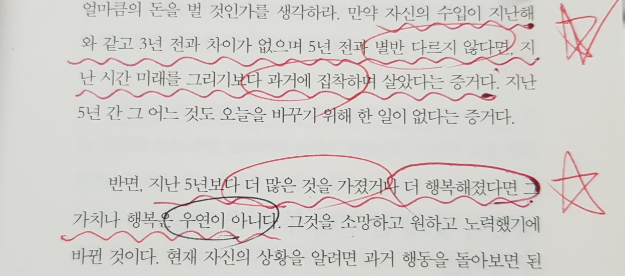 누구는 미래를 알려면 역사를 보라고 합니다. 누구는 미래는 과거로 결정되지 않는다고 합니다. 여러분은 어느 쪽이 맞다고 생각하시나요? 책에서는 현재의 나는 과거의 나의 영향이라고 합니다. 과거에 집착하고 있는 것은 아닌지, 미래를 꿈꾸고 있는지 되돌아볼 필요가 있습니다.