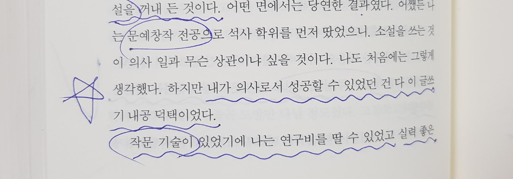 이 책의 저자는 훌륭한 의사이며 과거 문예창작을 전공하였습니다. 그래서 시간이 날 때 소설을 즐겨 읽는다고 합니다. 더분에 투고하는 글이 수월히 통과되고, 프로젝트 제안서 작성에도 유리했다고 하죠. 나도 책 읽는 것이 취미인데 글도 많이 써봐야겠습니다.