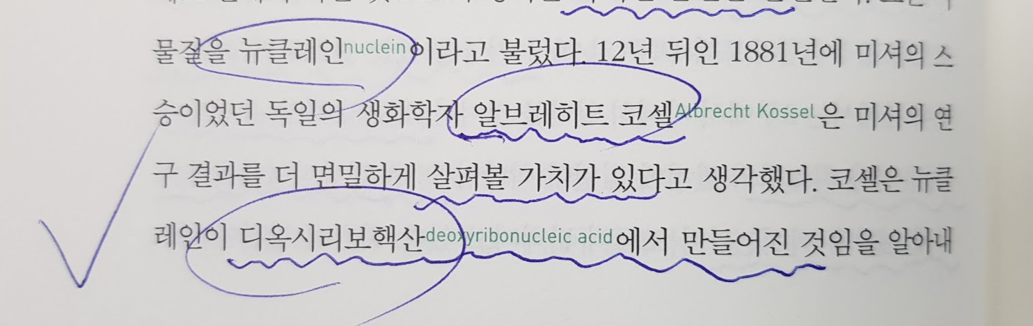 이 주문 같은 말은 바로 DNA의 정식 이름입니다. 19년대 알브레히트 코셀이라는 박사님이 이를 발견하고 노벨상을 수상했습니다. '디옥시리보핵산'은 백 년 정도밖에 안 됐지만 이제 모든 사람이 아는 단어가 되었습니다. 어디 가서 DNA가 무슨 약자인지 안다고 하면 다가오는 개인 맞춤의학시대를 한 발짝 앞서가는 것입니다.