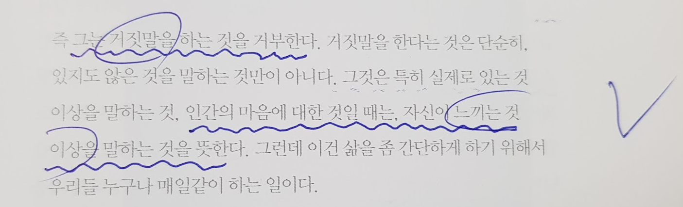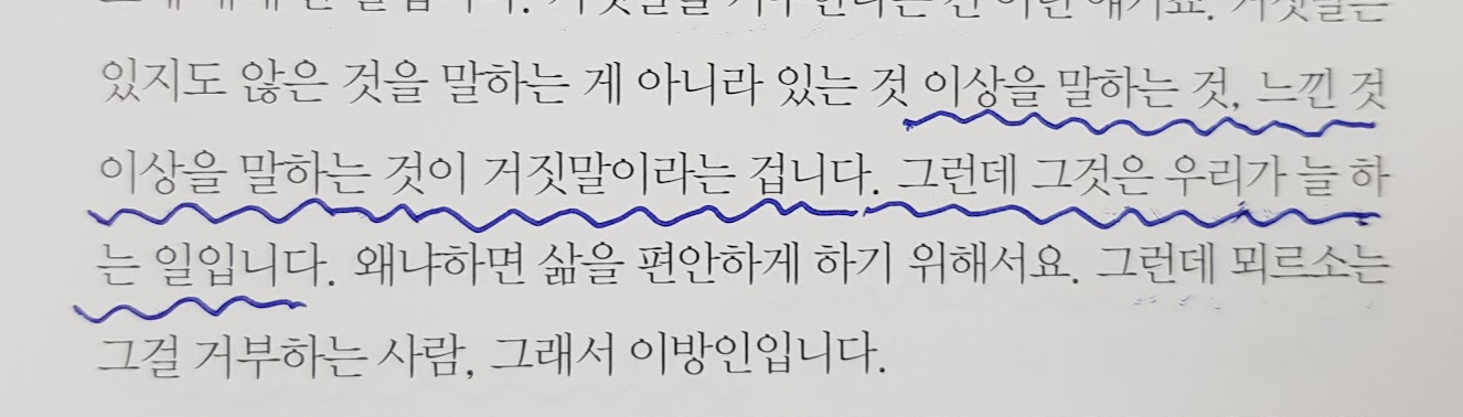 거짓말을 안 하고 살 수 없습니다. 나한테 솔직하지 않은 가짜 감정을 수시로 만들어 내고 있기 때문입니다. 그러면서 걱정과 불안의 철옹성을 만들고 있습니다. 그 성문을 깨부수기 위해서는 나의 느낌을 정확히 알아야 합니다. 솔직은 무엇을 얼마나 느끼는지 아는 것에서 시작된다는 교훈을 얻었습니다.