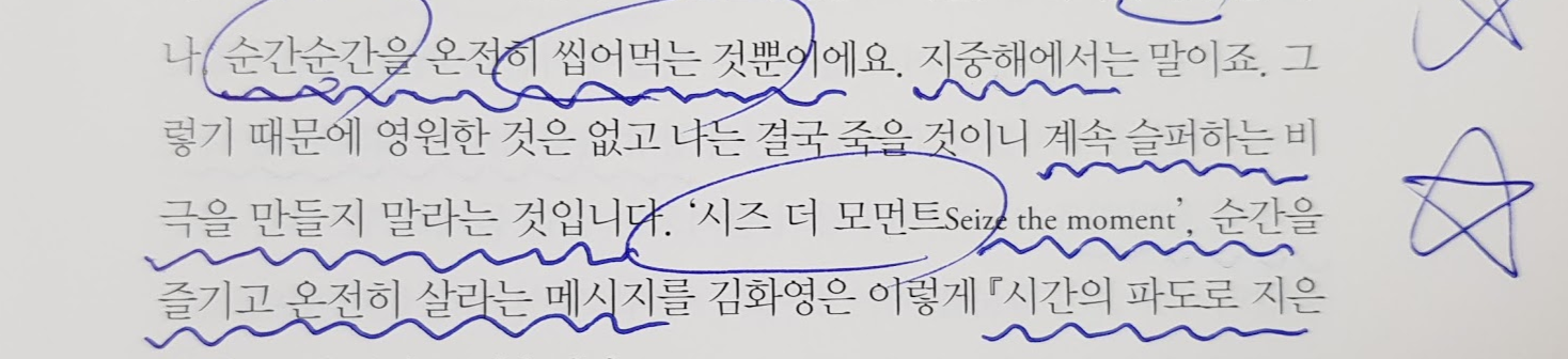 순간에 집중하려면 쓸데없는 걱정을 버려야 합니다. 러시아의 대부 톨스토이의 인터뷰 사례가 소개되는데 이 짧은 문장이 가진 무게는 엄청납니다. 과거의 나의 과오와 걱정의 무게만큼이나 무겁습니다. 과연 책은 도끼입니다.