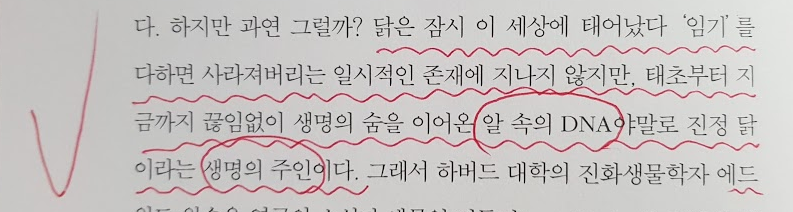 닭이 먼저냐, 달걀이 먼저냐는 어려운 딜레마입니다. 하지만 생물학의 눈으로 보면 그 답은 DNA입니다. 그러니 달걀이 우선이 되겠죠. 닭은 그거 더 많은 달걀을 만들기 위한 수단과 과정에 지나지 않다고 하네요. 그래서 우리는 모두 DNA를 알면 보다 본질적이고 보다 자연스러운 안목을 갖추게 됩니다.