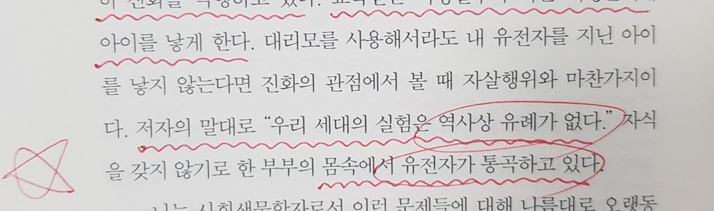 모든 동식물은 번성을 위해 최선을 다해 노력합니다. 하지만 인간은 예외입니다. 아이를 가지려고 하지 않는 것은 DNA의 시선으로 봤을 때 참으로 예외적입니다. 그래서 이것이 공룡을 멸종시킨 운석 충돌로 인한 5차 대절멸사건에 이은 6차 대절멸사건이라고 보는 연구자도 있다고 합니다. 유전자가 통곡하고 있다는 것이 느껴지는 말입니다.