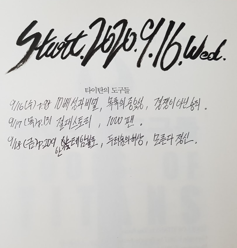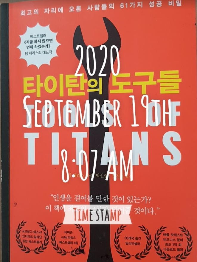 | [타이탄] 10초 행복의 힘, 꿈과 목표의 차이 , 바쁨의 죄 - 완독 (0) | 2020.09.21 |
