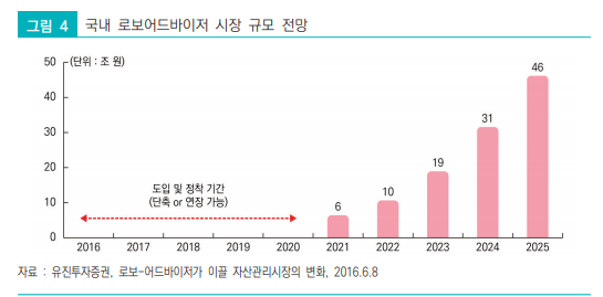 위 그래프는 한민족과학기술자네트워크에서 공개한 '국내 로보어드바이저 시장 규모 전망'이다.