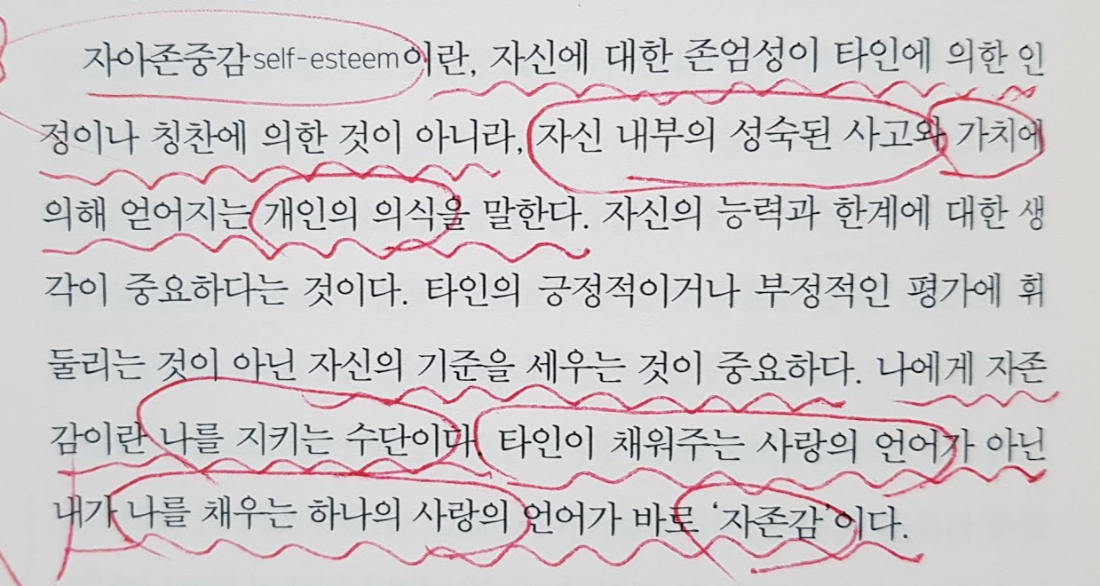 이제부터라도 자아존중감을 마음속에 새기고 나를 지키도록 노력해야겠습니다.