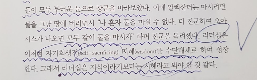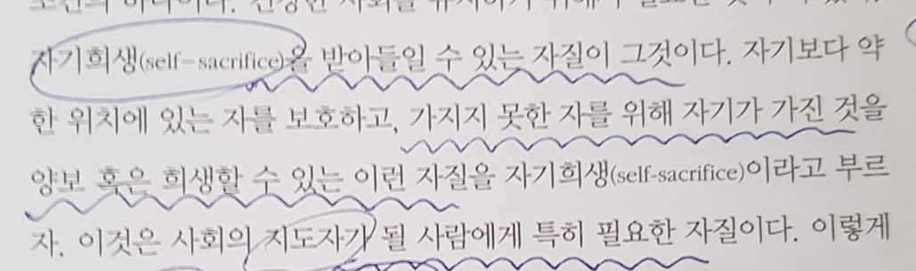 지도자한테는 많은 것들이 요구되는데 그중 가장 고결한 것이 바로 자기희생입니다.