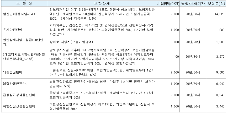 가장 폭 넓은 심장 관련 질환에 대한 보장 | 1천만 | 2천만 | 1천만 |