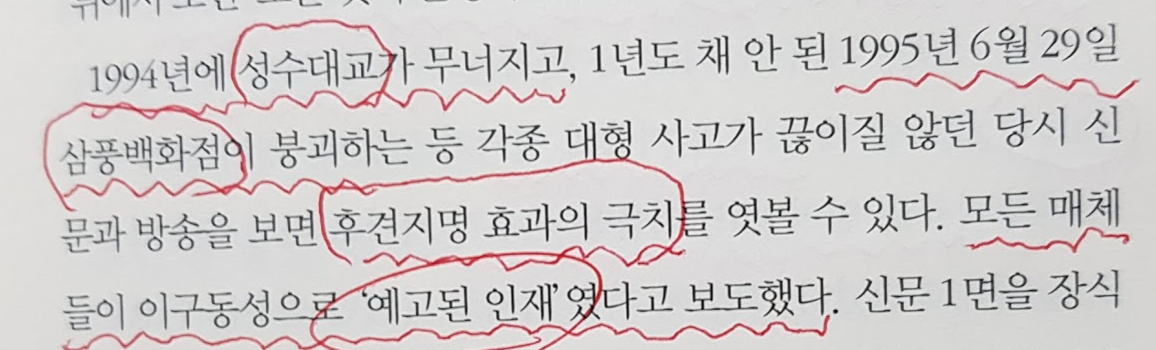 과거 성수대교와 삼풍백화점의 붕괴 사고 당시 예고된 인재였다고 하였습니다.