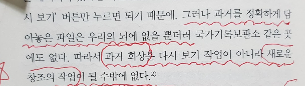 때문에 과거 회상은 단편적인 기억을 재구성하여 일종의 창조 작업이 됩니다.