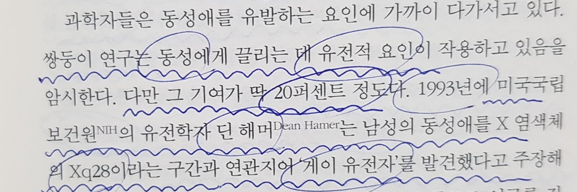 그런데 동성애마저 유전자의 영향이 조금 있다고 합니다.