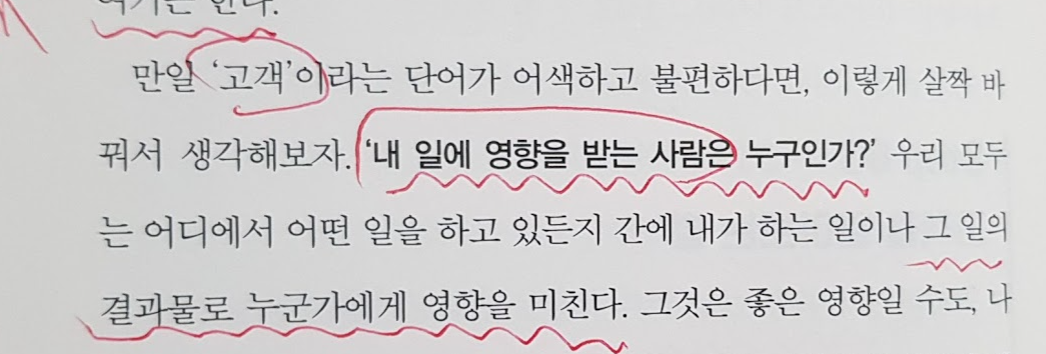 나의 일로 영향을 주도받을 수 있는 사람들이 바로 고객입니다.