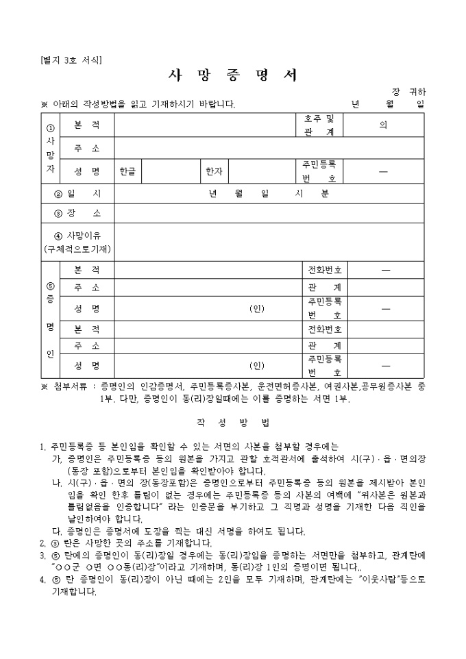사망진단서가 아니라 사망증명서입니다.