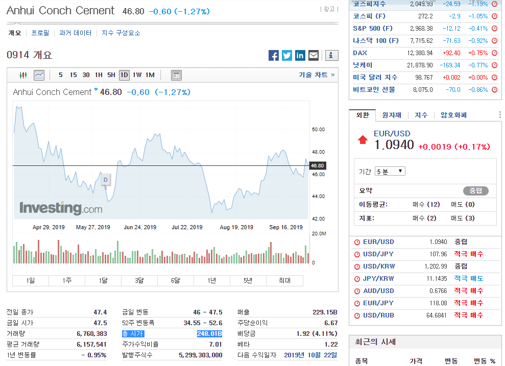 주식 모니터링 : https://kr.investing.com/equities/anhui-conch-cement