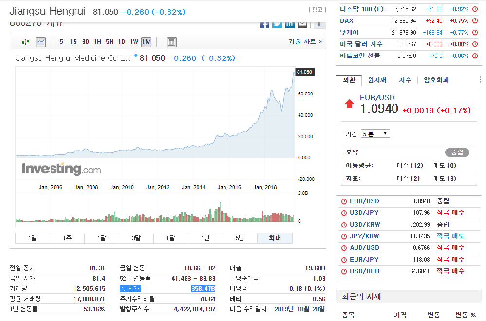 주식 모니터링 : https://kr.investing.com/equities/hengrui-medi
