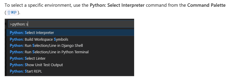 1. ⇧⌘P(윈도우는 Ctrl+Shift+P) 키를 누르고 python: s까지 입력하면 나오는 옵션 중에서 'Python: Select Interpreter'를 선택