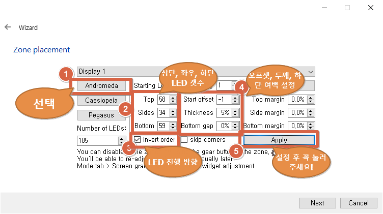 모니터에 설치한 LED 갯수를 새서 값을 입력해주면 됩니다.