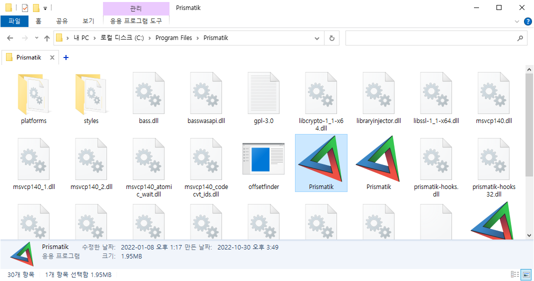 윈도우 사용자라면 상단의 'Prismatik.unofficial.64bit.Setup.5.11.2.31.exe'를 클릭하여 다운로드 합니다.