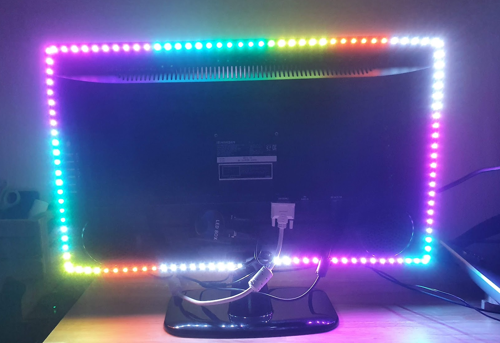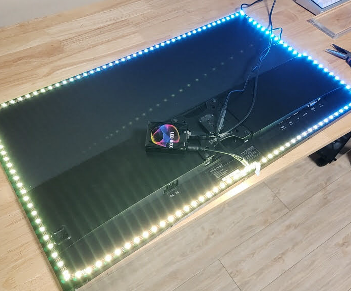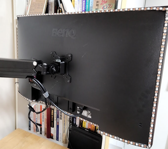 모니터 가장자리를 따라 LED 스트립을 부착합니다.