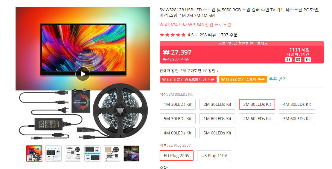 1. 5V WS2812B USB LED 스트립 : https://ko.aliexpress.com/item/32974224895.html