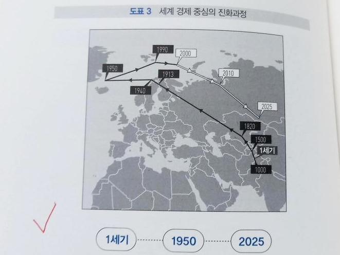 책 에는 위에 같은 자료가 나온다. 1세기경 인도와 중국이 세계경제의 중심국이었다가, 19~20세기 산업혁명으로 경제의 중심은 유럽으로 옮겨갔다. 그러다 21세기가 되면서 중국, 인도 등의 신흥국이 발전하면서 경제의 중심은 다시 아시아로 되돌아온다는 내용이다. 이런 경제중심 이동설의 핵심은 미국 경제의 약화, 그리고 아시아 경제 부흥에 있다.